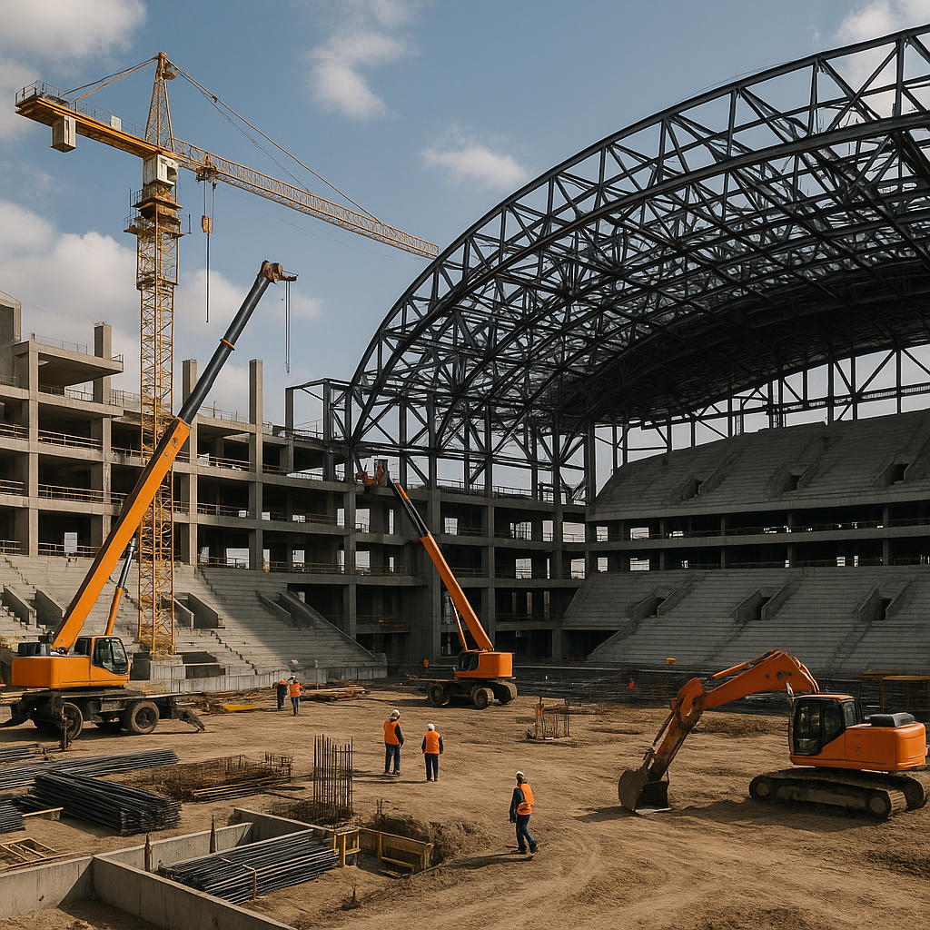 • Sports Complex Construction: Design and build of football fields, basketball/volleyball courts, swimming pools, fitness centers, and multi-use sports halls.